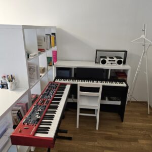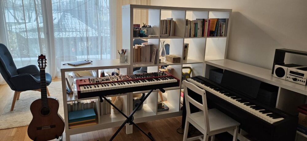 Konkret arbeite ich immer wieder mit Klient*innen, die sich in Comics ausdrücken, die Soul Collages machen, die zuhause mit verschiedensten Techniken Dinge gestalten (von großformatigen Bildern bis zu Töpferarbeiten), die sich mit Musik beschäftigen (egal ob mit der Melodie, dem Rhythmus oder den Texten) oder die selbst Musik machen, um einen besseren Zugang zu ihren Themen zu finden. In der Praxis stehen dafür sowohl Arbeitsmaterialien aller Art sowie einige Instrumente zur Verfügung (Keyboard/E-Piano, Gitarre, Percussion).